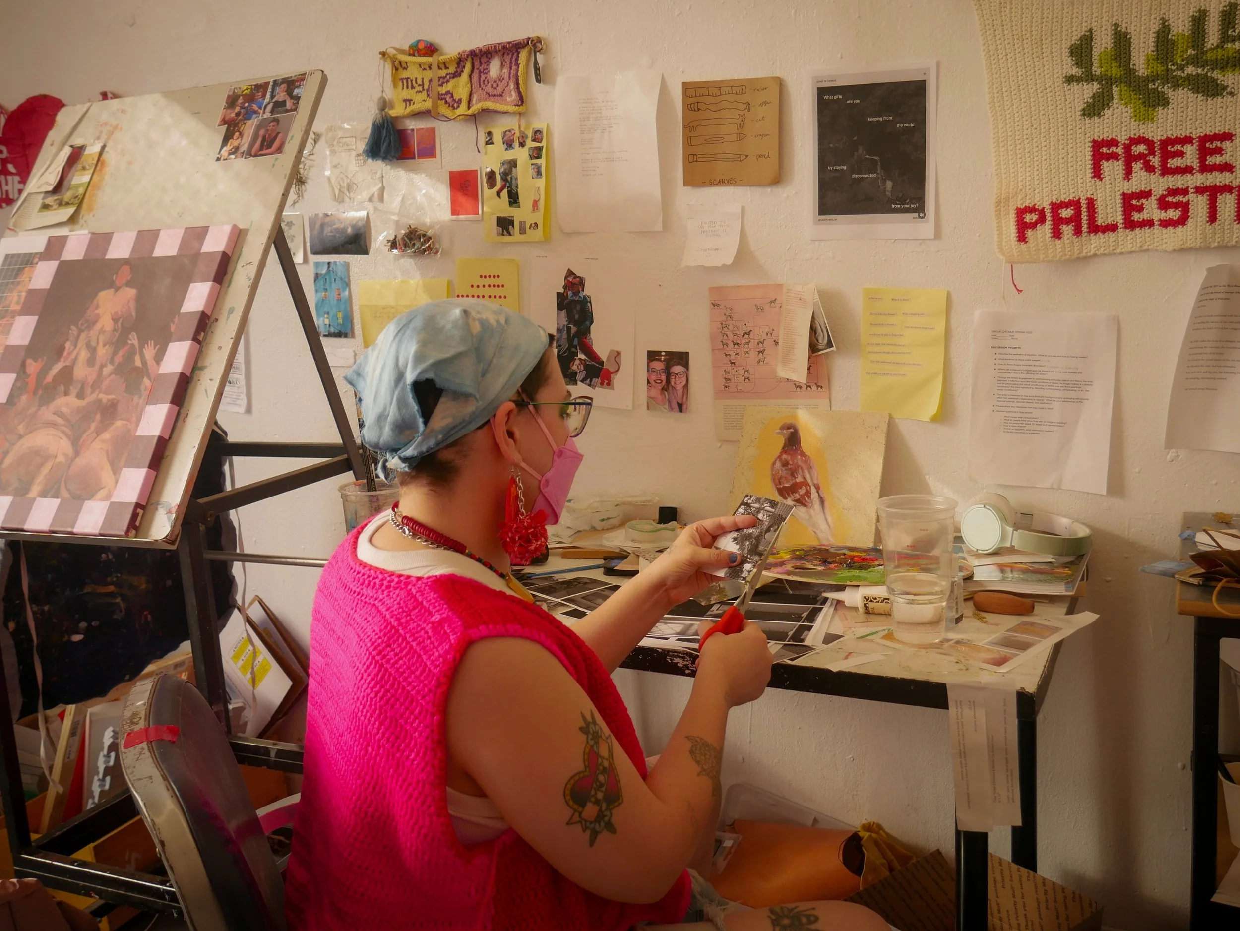 They snip, stick, solder, paint, try, fold, sew, snap, find, & place with curiosity, glass, pigment, paper, chance, fiber, knife, glue, & poetry. Through their expansive collage practice they compress time, archive memory, grieve, and reconceptualize what is remarkable.